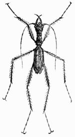 [78] The species of genus Saga sometimes reach extraordinary dimensions. Thus, in 1863, there was found in Syria, after a shower of ordinary locusts, a specimen of the Saga which was three inches and a quarter long. It was presented to the Museum of Natural History of Paris, by M. L. Delair.