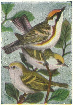 We should also advise every one to keep a notebook, apart from the Bird Guide. At the end of the season you can write neatly with ink on the top of the pages of the Guide, the dates of the earliest arrivals and latest departures of the birds that you have recorded. If you see a bird that you do not recognize, make the following notes, as completely as possible: Length (approximately); any bright colors or patches; shape of bill, whether most like that of a finch, warbler, etc.; has it a medium or superciliary line, eye ring, wing bars, or white in the tail; what are its notes or song; does it keep on or near the ground, or high up; are its actions quick or slow; upon what does it appear to be feeding; is it alone or with other birds, and what kind; where was it seen, in dry woods, swamp, pasture, etc.; date that it was seen. With this data you can identify any bird, but usually you will need only to glance over the pictures in the Bird Guide to find the name of the bird you have seen.