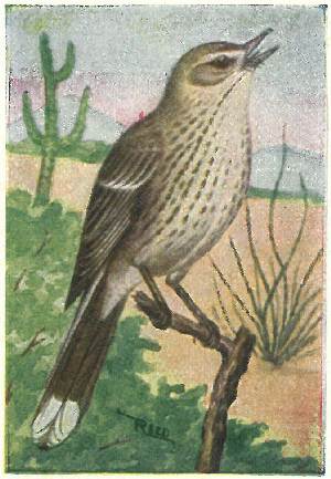In the southwestern portions of our country, from Texas and Kansas west to the Pacific, these curious birds are commonly found. They are locally known as “Ground Cuckoos,” “Snake-killers,” “Chaparral Cocks.” They are very fond of lizards and small snakes, which form a large part of their fare. They are very fleet runners, but fly only indifferently well. Their four to ten white eggs are laid on frail nests of twigs, in bushes.