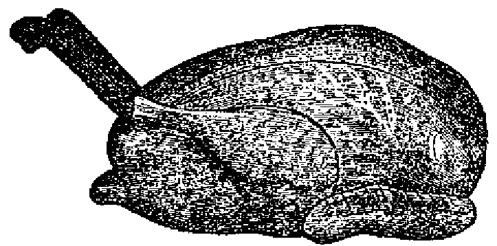 3.º Cortando las alas en filetes por el traves, lo que forma trozos cuadrados; se procede lo mismo, descendiendo sobre las otras partes del ave. Este último método, que es el más moderno, tiene el inconveniente de disipar el jugo y dejar los trozos más delicados adherentes al esqueleto.