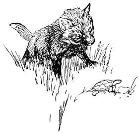 Field-mice utterly forgotten, his mouth watering with expectation, the young fox went sniffing hungrily over the turf, following the vague allurement hither and thither, till suddenly it steamed up hot and rich directly under his nose. A big black and yellow bumblebee boomed heavily past his ears, but he was too busy to notice it. His slim pink tongue lolling out with eagerness, he fell to digging with all his might, heedless of the angry, squeaking buzz which straightway began under his paws.
