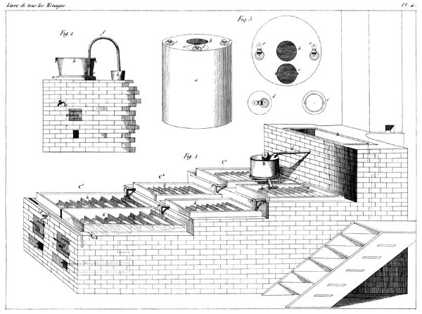 [31] Cette opération en grand, c'est-à-dire dans une grande chaudière, demanderait beaucoup de précautions, en ce qu'il serait plus difficile de maîtriser le degré de chaleur que dans un petit bain-marie, qui se place et déplace à volonté.