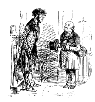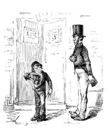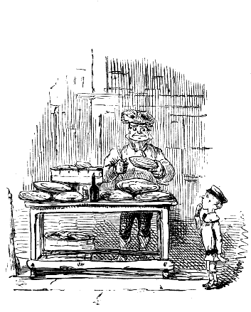 Newspaper Boy (reads). "A GENTLEMAN IN THE N-E-I-G-H—NEIGHBOURHOOD OF——, HAS AT THE PRESENT TIME SEVERAL E-NORMOUS GOOSEBERRIES IN HIS GARDEN, WHICH MEASURE TEN INCHES IN C-I-R-CIR C-U-M-CUM F-E-R-FER E-N-C-E-ENCE CIRCUMFERENCE, AND ARE OF THE A-S-AS ASTON ASTONISHING WEIGHT OF THREE HOUNCES HEACH."