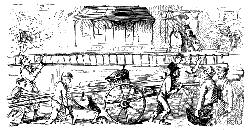 "NOW, THEN, SIR, JUMP UP ON THE ROOF, AND LOOK SHARP, PLEASE, SIR, HERE'S T'OTHER BUS A-COMING."