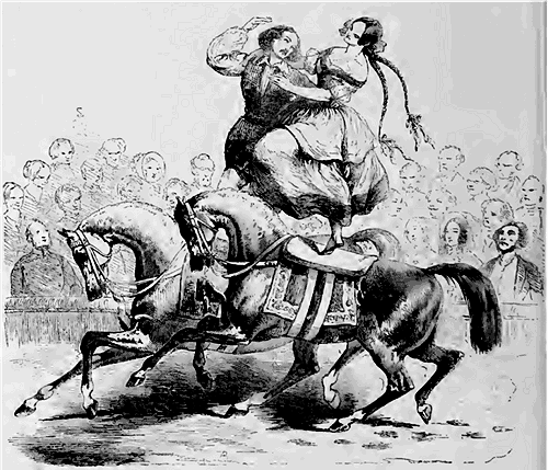 Le ministre, consterné, court revêtir l'habit hongrois et revient avec... devinez qui? avec Cellarius! le véritable Cellarius, suivi de ses deux charmantes sœurs. Il faut rendre justice au ministre, il a dansé de manière à justifier l'ordre absolu de Schahabaham. Rien de plus ravissant que cette polka dansée par le grand professeur et l'un de ses meilleurs élèves; les yeux les suivaient dans les dessins ingénieux dus à l'invention de Cellarius, et ne se lassaient pas d'admirer cette danse toute nouvelle pour eux, malgré les essais nombreux tentés par des amateurs plus zélés qu'habiles; aussi les applaudissements duraient encore que déjà le théâtre avait disparu et que les quadrilles étaient formés pour suivre l'exemple donné par Cellarius. La polka précéda! et suivit la valse; la modeste contredanse fut un peu négligée; le souper, bien que délicieux, ne fut qu'un entr'acte, un moment de repos entre deux études, et pourtant Odry raconta la touchante histoire d'un meunier qui avait trois fils et trois moulins qu'il adorait; histoire dont chacun se rappellera en souriant la consolante conclusion, la morale du meunier à ses moulins, à savoir qu'il vaut mieux être honnête que d'être pauvre, et ses conseils à ses fils, qu'il vaux mieux chômer que mal moudre.