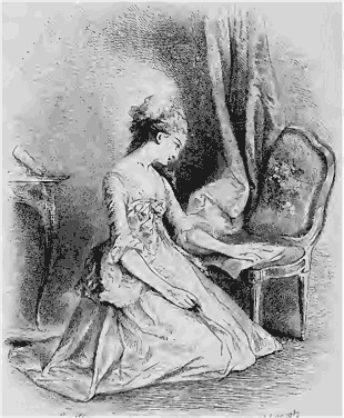 Il faut avouer, d'ailleurs, que M. Barbier n'a reculé devant aucun sacrifice pour satisfaire la passion favorite de ses souscripteurs; il leur donne chaque semaine, outre une feuille de texte parfaitement imprimée sur du beau papier, quatre ou cinq jolis dessins de MM. Em. Wattier, Karl Girardet, C. Roqueplan, E. Lepoittevin, T. Frère, H. Baron, etc., et un grand sujet, tiré à part sur papier de Chine, par Tony Johannot.--Les dessins ci-joins sont choisis au hasard parmi cette intéressante collection.--Voila d'abord Julie rêvant à Saint-Preux sous un bosquet, et Saint-Preux rêvant à Julie sur un banc. Ici les deux amants sont réunis: «Que mon rusé maître était timide alors, écrivait Julie, qu'il tremblait en me donnant la main pour sortir du bateau. Ah! l'hypocrite, il a beaucoup changé!» M. Tony Johannot nous les montre ensuite faisant ensemble quelque lecture aussi dangereuse que celle qui perdit Françoise de Rimini et son malheureux amant; enfin Julie, à genoux, écrit à Saint-Preux, en baignant son papier de ses larmes et en élevant à lui ses supplications.