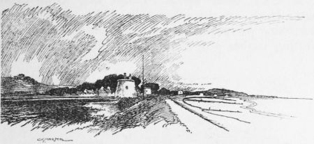 From the desolation of Warden it is four miles to[Pg 255] that hooked spit of shells and sand, Shellness, the farthest extremity of the island. By tracks which might, with every excuse, be described as hazardous, the route begins, but soon descends to the low sea-shore and the flat marshes—the shore carefully protected by a long series of dwarf timber groynes and a curved "apron" of concrete, the marshes defended by massive earthen dykes, continued along the circuitous shore all the way round to King's Ferry.