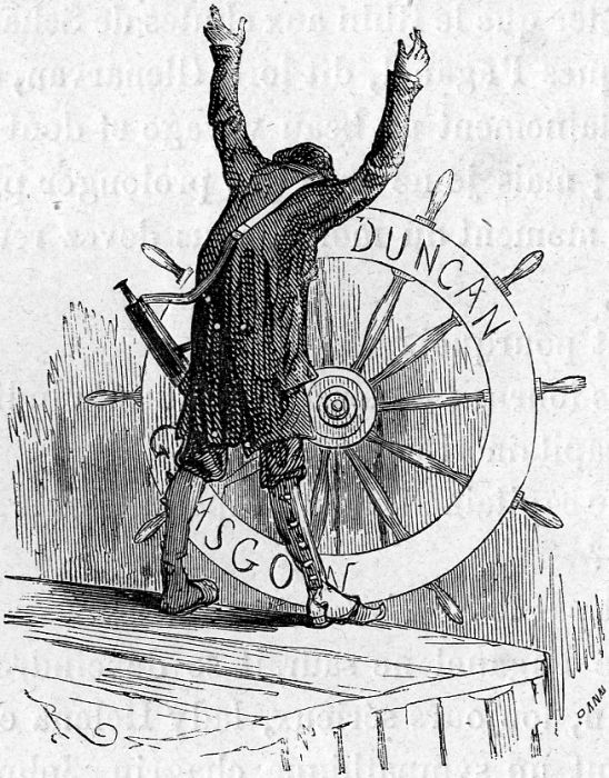 On the 26th of July, 1864, under a strong gale from the northeast, a magnificent yacht was steaming at full speed through the waves of the North Channel. The flag of England fluttered at her yard-arm, while at the top of the mainmast floated a blue pennon, bearing the initials E. G., worked in gold and surmounted by a ducal coronet. The yacht was called the Duncan, and belonged to Lord Glenarvan, one of the sixteen Scottish peers sitting in the House of Lords, and also a most distinguished member of the "Royal Thames Yacht Club," so celebrated throughout the United Kingdom.