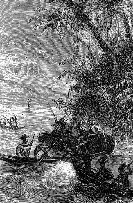 But on the next day seven canoes of the islanders attacked it most violently and suddenly, causing it to capsize.—p. 445.