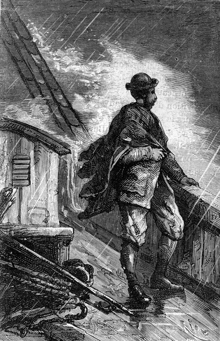 Day and night, heedless of the torrents of rain and the dashing spray of the sea, he remained on deck.—p. 452.
