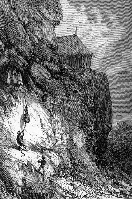 First her husband, and then she, slid down the rope to the point where the perpendicular wall met the summit of the slope.—p. 529.