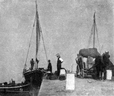 Und die großen gelben Segel der frechen Chioggioten! Überall schwärmen sie. Es macht ihnen Spaß, hart vor dem großen Dampfer zu kreuzen. Weiß klatscht das Wasser ins tanzende Boot. Lachend steht ein wilder brauner Kerl darin und singt. Grau schießt ein Torpedo durch die spritzende Flut, wie ein Aal. Hinter ihm fliegt in langen Tönen das Lied des lachenden Chioggioten her.