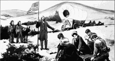 As there is a general physical similarity in the different parts of this entire Columbia Basin, so has there been a common geological history. Broadly speaking, the upper Columbia Basin from near Spokane on the north to Wallowa on the south is volcanic in origin. The scope of this work does not permit any detailed discussion of the geology of the region, but it is of interest to refer to the fascinating little book of Prof. Thomas Condon, formerly of the Oregon State University, on the "Two Islands." Professor Condon was the first systematic student of the geology of the Northwest, and during his active career, extending[2] from about 1855 to 1890, he accumulated a large and valuable collection of fossil remains as data from which to infer the stages in the geological history of the Northwest. One of his working hypotheses was that there were two islands as the first lands in what is now the Northwest. These were the Blue Mountain Island and the Siskiyou Mountain Island. Later geologists have not entirely accepted all the details of Professor Condon's hypothesis, though they regard his general reasoning as sound. It is generally believed now that there was a very early uplift, possibly a third island, in what is now the Okanogan, Methow, and Chelan highlands and mountains. At any rate, there is a general concurrence in the opinion that the oldest land in this part of the continent was those very regions where the two or perhaps three islands are supposed to have risen. The Chelan region and thence a vast sweep northeast and then southeast toward Spokane is of granite, andesite, and porphyry, the primeval crust of the earth. Again on the south, the core of the Blue Mountains, especially in the vicinity of Wallowa, is limestone and granite. All these formations are very ancient. On the other hand, the volcanic regions are comparatively recent, and those compose practically all the central parts. This area between those two ancient formations, the part covering the four counties of our present story being in the very heart of it, seems to have undergone almost every possible dynamic influence, fire, frost, and flood. Apparently it was a deep basin between the earlier elevations and was the scene of stupendous volcanic and seismic energy. Then it was covered with water and for ages a great lake extended over much of what is now the Walla Walla Valley and the valleys of its tributaries and the lower courses of the other streams, as the Touchet and Tucanon. When the water had drained off, there succeeded an age of ice and frost, with disintegration by cold and even some glaciation. Probably there were several alternating eras of fire and frost and flood. The Yakima Indians have a fantastic tale of the formation of these lakes and from them the Columbia River, which may have some basis of scientific fact. They say that in the times of the Watetash (animal people, before the Indians) a monstrous beaver, Wishpoosh, inhabited Lake Kachees, now one of the sources of the Yakima. Wishpoosh had the evil habit of chewing up and cutting to pieces all the trees as well as other animals in his reach. Speelyi, the chief God of the Mid-Columbia Indians, endeavored to make way with this destructive monster, but succeeded only in wounding him severely and making him so angry that he laid around him with furious energy and soon burst the rocky barriers of the lake. The water flowing out streamed over the country and formed the Upper Yakima. The deluge was checked by the mountain ramparts of the Kittitas Valley, as we know it, and thus was formed a great lake over all that valley. But the raging beaver finally tore out that barrier also and the flood passed on into the Yakima Valley, making another lake over the whole region where Yakima now is, but it was stayed for a time by the ridge just below the Atahnum of the present. In like manner that barrier was torn out and the accumulation of waters swept on to the vast level region where the Snake and Columbia, with the lesser streams of the Yakima and Walla Walla, unite. Thus, a large part of the region which we shall describe in this history was a lake. But the infuriated Wishpoosh was not yet content, and by successive burstings of barriers the Walla Walla lake was emptied through the Umatilla highlands, then the Cascade Mountains themselves were parted, and the chain of lakes was opened[3] to the ocean, the Columbia River itself being the connecting stream. Wishpoosh having reached the ocean making havoc among the whales and all other objects of creation, when Speelyi at last pierced him to the heart and his monstrous carcass was cast up on Clatsop Beach. There Speelyi cut him into fragments and of him made the various Indian tribes.