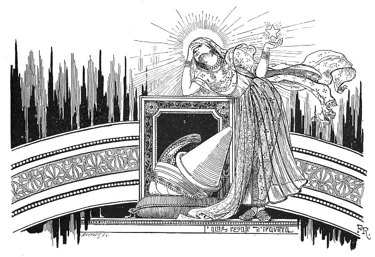 —Méchant! méchant! me disait-elle à demi-voix, tout près de mon oreille, tu as pu me fuir ainsi, m'abandonner dans un moment si grave de ma vie?... J'ai bien vu que tu ne donnais pas ton consentement à ce mariage, tu lisais dans l'âme du prince sans doute et cette âme ne te plaisait pas. Certes, ta sagesse voyait juste, mais tu aurais dû, comme moi, te résigner et te soumettre au destin, au lieu de me quitter comme un ingrat, comme un jaloux.... Car tu étais jaloux et j'ai lu la mort du prince dans tes yeux. Si c'est pour éviter un crime que tu t'es enfui de Golconde, je te pardonne, malgré le chagrin que tu m'as causé. Tu peux maintenant revenir avec moi, ajouta-t-elle: je suis veuve.