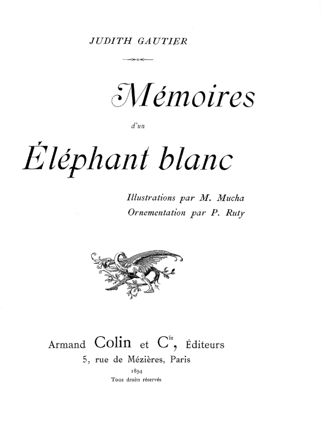 Les anciens racontent que les éléphants ont écrit des sentences en grec et que l'un d'eux, même, a parlé. Il n'y a donc rien d'invraisemblable à ce que l'éléphant blanc dont il s'agit ici, le fameux Iravata, si célèbre dans toute l'Asie, ait pu écrire ses mémoires.