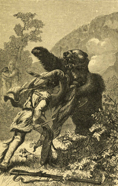 [83] To some who have read the descriptions of bear–hunts in Norway and Russia it may appear neither wonderful nor unusual that a single hunter should kill a full–grown bear; but it must be borne in mind, that the bear of the north of Europe bears about the same proportion to a grisly bear of the Rocky Mountains (Ursus horribilis) as a panther does to a Bengal tiger. The grisly bear is not only the largest and most ferocious of his species, but his tenacity of life is so remarkable that he frequently runs a considerable distance and survives some hours after receiving several balls through the lungs, head, and heart. On this account it is never safe for the most experienced marksman to attack him alone, unless there be some tree or place of safety at hand, for the grisly bear cannot or will not climb a tree; and some idea of the animal’s strength may be formed from the fact, attested by many credible witnesses, that, after killing a bison, he will frequently drag the carcase some distance to his lair. For descriptions and anecdotes of the grisly bear, see Lewis’s and Clark’s Expedition to the Rocky Mountains, and Major Long’s ditto. A feat almost similar to that recorded in the text was performed some years ago by an Iroquois, one of the last of his tribe, and who, though grievously wounded, survived. The Author saw this Indian hero arrive at St. Louis in a canoe, containing only himself and a boy, they having descended the Missouri for more than 1500 miles in their frail bark; and having passed in their perilous voyage the villages of Crows, Riccarees, Sioux, Black–feet, and other predatory tribes.