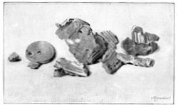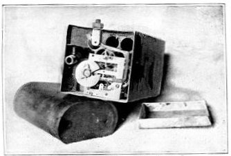 It may be said that the more serious attempts to devote dynamite to the very reverse purpose from what it was intended for commenced in 1881, when, on the 14th January of that year, an attempt was made to blow up the barracks at Salford. Very little damage was done to the barracks, but a lad was killed and another injured. In all the subsequent attempts to destroy life and property, only one other death has occurred. On the Christmas Eve of 1892, an infernal machine exploded outside the Detective Office in Exchange Court, Dublin Castle, when a detective officer was killed (Fig. 1). Without including minor explosions, the numbers of important dynamitic efforts from the year 1881 to 1892 are as follows:—In 1881, 9 attempts; 1882, 5; 1883, 10; 1884, 12; 1885, 8; 1886, 4; 1887, 15; 1888, 2; 1889, 3; 1890, 5; 1891, 6; and in 1892, 7 outrages. It is not necessary to say that the initial explosion at Salford, in 1881, greatly alarmed the public. Anything found of a suspicious character was at once associated with dynamite, and the earliest relic treasured at New Scotland Yard is a strange-looking object which was found in a tram-car, and owing to the excited state of the mind of the British public at that time, was immediately put down as an infernal machine. There is, however, some reason to believe that it was nothing more than a model for a new idea in babies' feeding-bottles (Fig. 2). Its inventor never put in a claim for it, but it still remains at "The Yard" for anybody who can justify his or her claim to its possession. By its side is an imitation piece of coal—(Fig. 3)—a most deadly weapon when used, for it is intended to be filled with explosive and thrown in the stoke-hole of vessels, in the hope that the stoker may shovel it into the furnace with some of the other fuel. Another relic of this year is one of four machines which were found on the 2nd July at Liverpool in the Bavaria (Fig. 4), six other infernal machines having been found in the Malta two days previously. They were discovered in barrels of cement. They contained lignin-dynamite, with a very cheap clock arrangement for firing it. The machines[Pg 121] proper were in leaden boxes about nine inches long by four inches square. A second machine of the 1881 period is of the clockwork pattern (Fig. 5), and is controlled by a small knife, which falls at the set time, cutting a string, releasing a spring which falls on a percussion cap, and so brings about an explosion.