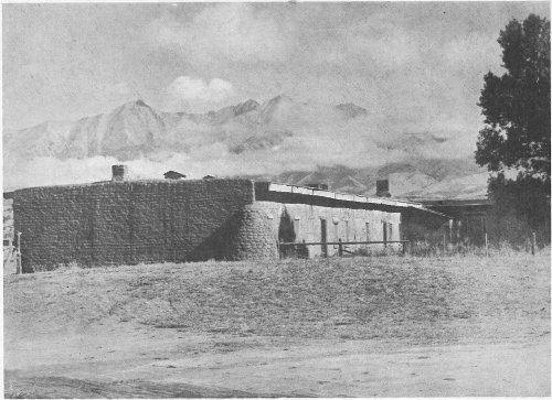 The Fort’s West Barracks. Mount Blanca in the background. About 1900.