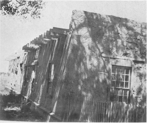 The reconstruction work on the fort buildings required careful supervision. The adobe bricks were made as they were made in 1858—the mud being molded in forms and placed in the sun to bake. After the adobes were set in place, the walls were plastered inside and out with a coat of the same adobe material. Mexican women were employed to work the mud into the crevices and give the walls a smooth surface. This they did with their hands, alone, just as it has been done in the Southwest United States for centuries.