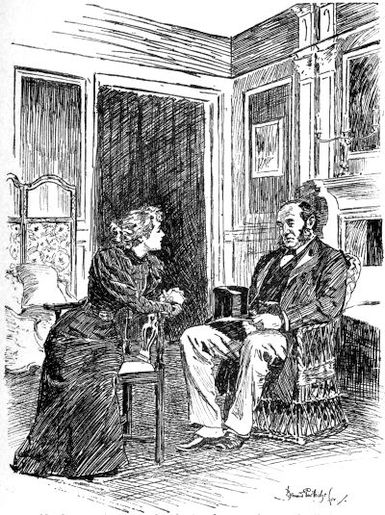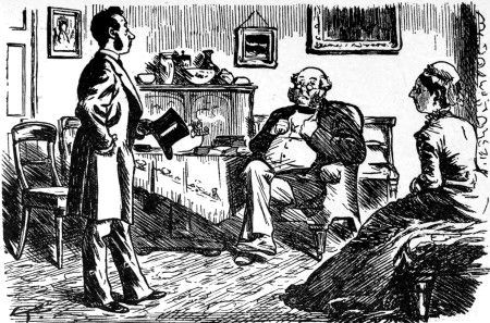 Doctor (to Mrs. Perkins, whose husband is ill). "Has he had any lucid intervals?"