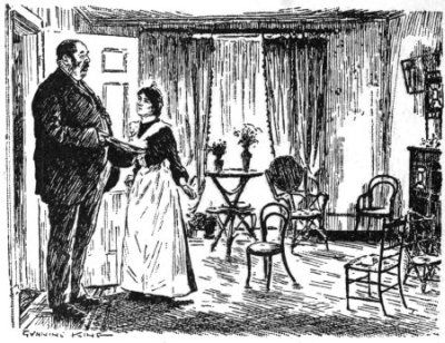 John Leech dealt largely with the servant girl trouble, but as many of his jokes were topical and have lost most of their point with the passing of the topic, and as others have an old-fashioned air with them and are not so smart or so pointed as those by later artists, preference has been given to the moderns.