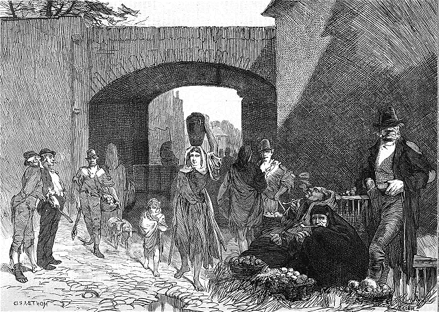 L'Irlande devrait être un grenier d'abondance, et cependant elle est pauvre. En vain sa fertilité appelle le travail des habitants, contraints la plupart du temps de le refuser. C'est que les fermiers gémissent sous l'oppression de gens d'affaires qui prennent à bail général les terres que leurs propriétaires n'osent habiter, non sans raison. La faim est mauvaise conseillère, comme en témoignait dernièrement un de nos dessins; Le meurtre d'un landlord par son fermier.