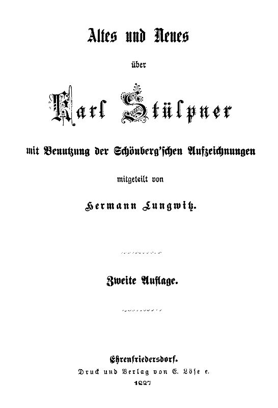 Unter den verschiedenen Schriften, die im Laufe der Zeit über den berühmten und berüchtigten Raubschützen des Obererzgebirges Karl Stülpner erschienen sind, kann, soviel mir bekannt ist, nur eine einzige Schrift berechtigte Ansprüche auf Glaubwürdigkeit machen, das ist das Werk von Karl Heinrich Wilhelm Schönberg. Wie es auf dem Titel heißt, hat Stülpner selbst dem Verfasser seine Erlebnisse der Wahrheit getreu mitgeteilt und sind dieselben von genanntem Schönberg aufgezeichnet worden. Das Büchlein, welches im Jahre 1835 gedruckt wurde, ist gar nicht im Buchhandel erschienen, sondern auf dem Wege der Subskription vertrieben worden, der Ertrag floß, wie aus dem Vorwort hervorgeht, dem alten und erwerbsunfähigen Stülpner zu. Die Schönbergsche Schrift ist äußerst selten noch zu finden, in den Bibliotheken der Nachbarstädte gar nicht vorhanden, ich habe sie nur durch die Güte des Herrn Oberbibliothekar der Königlichen öffentlichen Bibliothek zu Dresden erhalten können. In folgenden Mitteilungen werde ich mich hauptsächlich an das Gegebene des erwähnten Büchleins halten und gleichzeitig glaubhafte mündliche Ueberlieferungen mit verwerten. Erwarte aber der freundliche Leser keinen Roman, in welchem doch Wahrheit und Dichtung gemischt sind, es werden hier nur die Thatsachen erzählt, wie sie in der Wirklichkeit stattgefunden haben.