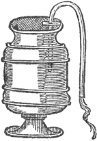 Let there bee had in a readinesse a pot made after the forme of the figure following, having a little hole at the top, in the which fasten a reed or pipe, also another little hole at the bottom: presse this pot into a bucket of water, and it will make a loud noyse.