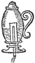 Prepare two glasses like unto the figure marked with the letters A, B, the one of them must have a small hole in or about the head thereof. Prepare likewise for the bottom a vessell of the fashion of the figure G, H, having two mouthes, at each end one, also a cocke in the middle, as K: divide then the shank of the glasse without the hole in the top, into equall parts, and set figures upon it: next lute them both fast into the necks of the bottom vessell. (But first remember to put them in a frame:) when the cement is dry turn the cock of the bottom vessell, and rarify the ayre in the glasse that hath no hole at the top; then set the bottom vessell a little way into a vessell filled with water, and it will suck up the water as it cooleth, when the bottom vessell is full, also the water mounted in that top glasse without a vent, up to a fitting degree; (the temper of the weather regarded) then depresse (but gently) the glasses into the vessell of water, untill the water be come up into the glasse with the vent at the top sufficiently, that is, so that in both the glasses may bee contained so much water as will fill the shank of one, and about 2 or 3 degrees of the other; then turne the cock, and take away the vessell of water from under them, let them down, and fasten the bottom vessell unto the bottom of the frame, and make a rock about it, or else what other works you please, that the art may not be discerned. Lastly, set figures upon both, but first upon that without the vent, beginning from the bottom, and proceeding upwards, then lay your hand upon the head of it, which will depresse the water, which when it commeth equall to the degrees, paste the same degree on the place of the water in the other glasse with the vent, and it is done.