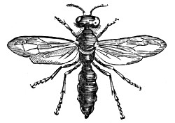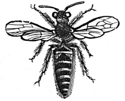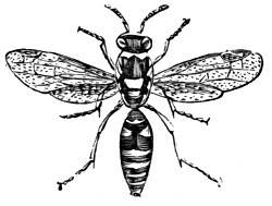 Family 3, Vespidæ.—The Social Wasps, which belong to this family, are very well known everywhere in this country. In their general structure they resemble the bees, but are usually much more slender in appearance, and also much less hairy.
