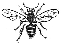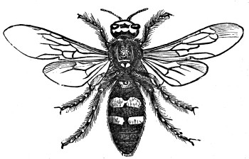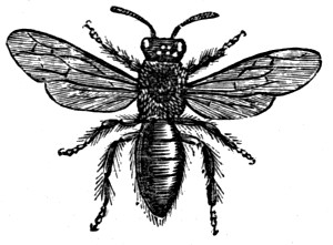 Family 1, Aphidæ.—This family contains the numerous species of honey bees which are familiar to all of us. They are very[16] varied in their structure, colours, and habits. Many species are social, while many others are solitary. The common Hive Bee (Apis mellifica) belongs to the former class. There is, perhaps, no insect which has attracted so much notice as this species. Volumes have been written respecting it, and philosophers in all[17] ages of the world's history have spent their whole lifetime in the elucidation of its economy.