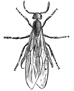 Family 9, Larridæ.—This family very much resembles the last. The species are mostly small insects, few of them measuring half an inch in length. They are usually black, sometimes with the abdomen red at the base.