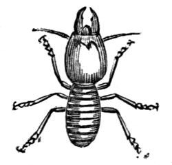 The Jigger or Chigoe (Sarcopsylla penetrans) is abundant in the West Indies and in South America. It is sometimes very annoying to travellers, burrowing deeply under the skin. The body of the female is capable of attaining to the dimensions of a pea.