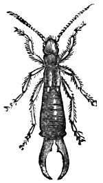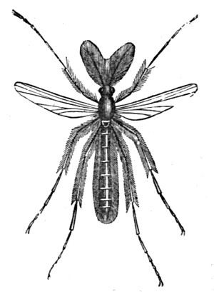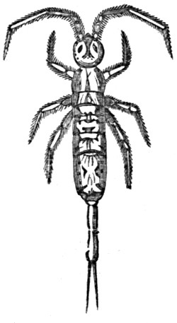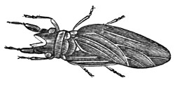The Human Flea (Pulex irritans) is familiar to every one. It gets its living by sucking our blood, and is of great annoyance, particularly in hot weather. The blisters which it raises on various parts of the body are exceedingly irritating.