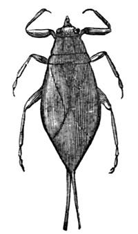 The insects belonging to this section much resemble spiders in appearance. They are all parasitic, and are remarkable for the[107] perfect insect producing its young singly, and that not in the egg state, as in most insects, but either in the pupa state, or as a mature larva ready to become a pupa immediately. This tribe contains only three families.