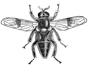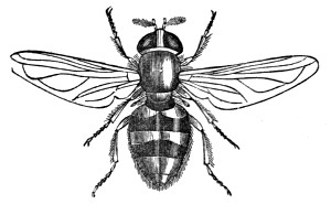 Mellinus arvensis is a black insect, about half an inch in length, with stripes on the abdomen and yellow legs. It provisions its nest with flies, and not being able to capture them by swiftness, runs past them when they are resting in an unconcerned manner till they are thrown off their guard, when they are pounced upon and carried off to the nest.