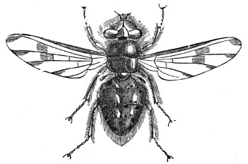 Family 36, Hippoboscidæ.—The most familiar insects comprised in this family are known as "Forest Flies." The common Forest Fly (Hippobosca equina) is a brown species about one-third of an inch in length, and exceedingly annoying to horses, particularly in the New Forest. The Sheep Tick (Melophagus ovinus) is another well-known example.