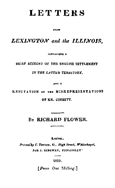 and the Illinois, 1819; Flower's Letters from the Illinois,
