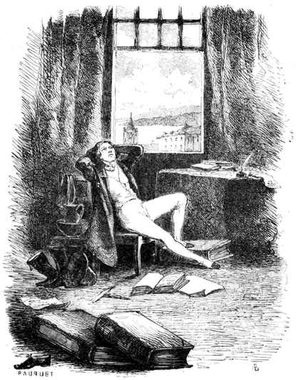 Diese Vorstellung, die ich mir vom Dichter mache, ist ganz wahr, denn man sehe nur, wonach diejenigen ringen, welche nach diesem Berufe streben. Ist es nicht, wenn irgend möglich, nach dieser Verwirrung, diesen Schmerzen, diesem reichen Chaos? Gleich wie man die Tugend durch fromme Redensarten nachäfft, so äffen sie die Poesie durch Worte der Klage, der Angst und unaussprechlichen Schmerzes nach. Sie leiden in ihren Versen, sie seufzen in ihren Versen, sie schleppen darin mit zwanzig Jahren das ersterbende Alter eines verbitterten Lebens, sie vergehen darin! Fast Alle beginnen damit. Ach! Freundchen, es ist nicht so leicht als du denkst, traurig, unglücklich, betrübt sein; von Wünschen gefoltert, von Entzücken gegeißelt zu werden, sein Leben verbittern, sterben wie Millevoye! Darum die Maske herunter und zeige dein Antlitz heiter. Warum, du dicker Freund, o warum deiner Natur nicht folgen? Was für einen Vorzug erblickst du darin, seufzend und klagend zu erscheinen, für todt und doch nicht im Grabe vergessen zu gelten?