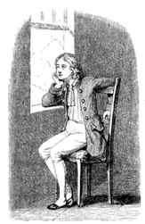 Wie ich eben im besten Zuge war, kommt just der Pastetenmann über die Straße; es war dies seine Stunde. Natürlicherweise trat der Gedanke, Pasteten zu essen, sogleich vor meine Seele; ich machte mir jedoch ein Gewissen daraus, in einem Augenblicke, wo ich mich mit meiner Seele beschäftigen sollte, einem fleischlichen Gelüste nachzugeben. Also ließ ich den Burschen harren und schreien und blieb ruhig in meinem Stübchen sitzen.