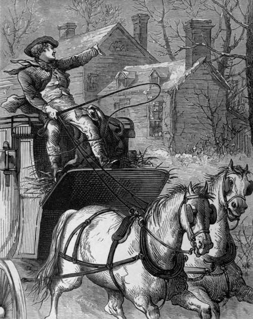 It was a radiant June morning, when the elms of Poganuc were all alive with birds, when the daisies were white in the meadows, and the bobolink on the apple-tree was outdoing himself, that Hiel drove up to the door of the Parsonage to take Dolly and her husband their first day's journey towards their new home. There were the usual smiles and tears and kissing and crying, and then Hiel shut the stage-door, mounted his box, and drove away in triumph. It was noticed that he had ornamented his horses with a sprig of lilac blossoms over each ear, and wore a great bouquet in his button-hole.