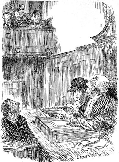 [" ... the Court was in an uproar from the moment the magistrates took their seats.... Counsel for the Crown was rudely interrupted by the defendants ... much to the delight of the crowd.... After some particularly riotous scenes the police were called on to clear the court.... One of the defendants was supplied with meat and bread in court."—Globe.]