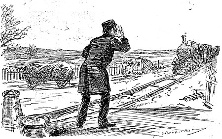 Station-master. "Ye'll catch it all over ye if ye don't get off the line mighty quick!"