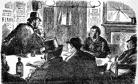 [Loud cries of "Shame on the polis for shtarvin' of um!" "Shtick up for yer roights, avick!" "To h——wid the magisthrates!"