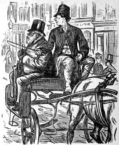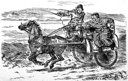 Traveller. "Get on, man; get on! Wake up your nag." Driver. "Shure, sorr, I haven't the heart to bate him." Traveller. "What's the matter with him? Is he sick?" Driver. "No, sor, he's not sick, but it's unlucky 'e is, sor, unlucky! You see, sor, every morning, afore I put 'im in the car, I tosses 'im whether 'ell have a feed of oats, or I'll have a dhrink of whisky, an' the poor baste has lost five mornings running!"