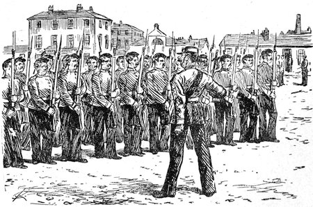 Our Military Manœuvres.—Irish Drill-Sergeant (to squad of militiamen). "Pr's'nt 'rrms!"—(Astonishing result.)—"Hiv'ns! what a 'prisint'! Jist stip out here now, an' look at yersilves!!"
