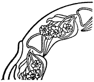 Bittersweet. Some of the berry forms Yellow-Red, others Albert Yellow mixed with Pompadour. Moss Green is a very good tint for upper leaves and Apple Green mixed with a touch of Deep Purple for lower leaves; a touch of Black may be added to this mixture for darkest leaves. Auburn Brown should be used for stems. Background of Oriental Ivory mixed with a touch of black is effective for such an arrangement. If the design is a panel effect bordered with bands, Gold may be used to good advantage for bands.