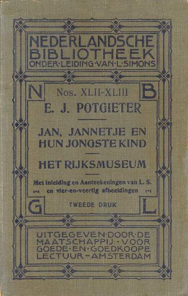 Na deze algemeene opmerkingen zullen een paar over de twee werken zelf moeten volgen. Aanvankelijk lag, laat ik het vooropstellen, alleen het geven van een geïllustreerde uitgaaf van het Rijksmuseum in het door een onzer abonnés geopperde plan. Maar de allegorie van JAN, JANNETJE EN HUN JONGSTE KIND, op oudejaarsavond van 1841 geschreven, is zoozeer het praeludium tot het langere opstel geweest,—dat ik toch eigenlijk niet kon nalaten haar te doen voorafgaan. Jan en Jannetje—dat zijn de figuren, waarin P. zich ons Holland uitbeeldt, vader en moeder van een talrijk kroost. De figuratie lag als voor de hand voor zulk een goed kenner van onze taal als Potgieter. We kennen immers allen Janmaat en Jan Compagnie; we kennen Jan Hen, Janhagel, Jankalebas, Jan Klaassen, en al in de 17e eeuw immers had W. D. Hooft in zijn klucht van Jan Sali dezen naam tot kenschets van een sukkel gebruikt! Potgieter had de groep maar te voltooien—en hij deed het met vernuft, met valsch vernuft ook wel (maar dat is de verleiding van het genre!) en, vooral, hij deed het met den zin van den kleurrijken schrijver, die oud-hollandsche binnenhuizen met de pen weet te schilderen, en uit het gemoed van èen, die Jan en Jannetje hartelijk liefhad, en die in Jan Salie hun en zijn ergsten vijand wist. Alles heeft de sukkel, de machtelooze, de durfniet voor Jan en de zijnen bedorven: Jan's macht ter land en ter zee; Jan's handels- en ondernemingslust; Jan's open levenszin, Jan's letterkunde, Jan's tooneel, Jan's kunst—en hartgrondig moet het er uit: „Ik schaam me dat ik zijn vader ben!—Moeder, morgen moet Jan Salie naar een hofje!”—We zien de vergelijking tusschen de 17e en de 18e en 19e eeuw, die het eigenlijke thema voor het Rijksmuseum zal worden, al in de kiemen zich ontwikkelen; naar Vondels zegswijze is 't, of in deze oudejaarsbespiegeling: „het zaad voor het toekomende (stuk) is gezaaid!”—Vooral de kennis en waardeering van Vondel, Hooft en Huygens boven Cats, straks zoo uitvoerig uit te werken, gaan al spreken. Als we nu Cats hebben leeren vergeten, Huygens waardeeren, van Hooft en Vondel genieten—we hebben er zeker niet weinig Potgieter voor te danken, al meten we weer onzen afstand van hèm er aan, dat alleen-kernigheid en vroomheid, die samen hèm tot Huygens trokken, òns minder zeggen dan Hoofts gevoelige beeld-taal, dan Vondels grootmogendheid over taal, gevoel, verbeelding.—
