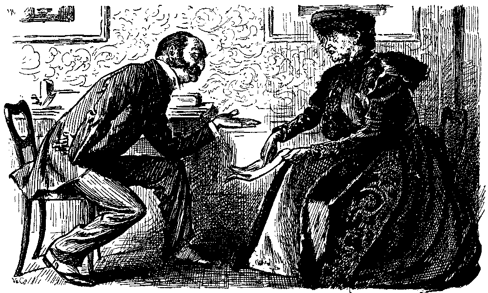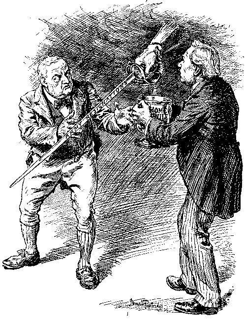In the "Essence of Parliament" little is said of the arguments, but we get a glimpse of Lord Randolph Churchill's return to the political arena and echoes of the unbridled loquacity of Mr. Sexton. The cartoons are more instructive, notably that on the introduction of the "Guillotine" by Gladstone, with the G.O.M. as chief operator, Harcourt and Morley as republican soldiers, and Amendments, as heads, falling into a waste-paper basket. The fate of the measure is neatly hit off in the "Little Billee" cartoon; Home Rule as "Little Billee" is about to be massacred by the House of Lords, represented by Salisbury and Hartington as chief villains. "Little Billee" in the legend not only survived but attained high distinction in after life; but it is hard to say whether Punch implied a similar resurrection for the Bill of 1893. But whatever were his views on the merits of Home Rule, Punch was decidedly critical of the Government's naval policy, and when Mr. Gladstone and Mr. Morley had simultaneously made seemingly irreconcilable speeches on the subject, he adroitly invoked the shade of Cobden, who had, in certain conditions, proclaimed himself a Big Navyite. Punch fortified the argument by a set of verses headed "Rule Britannia" and ending with this stanza:—