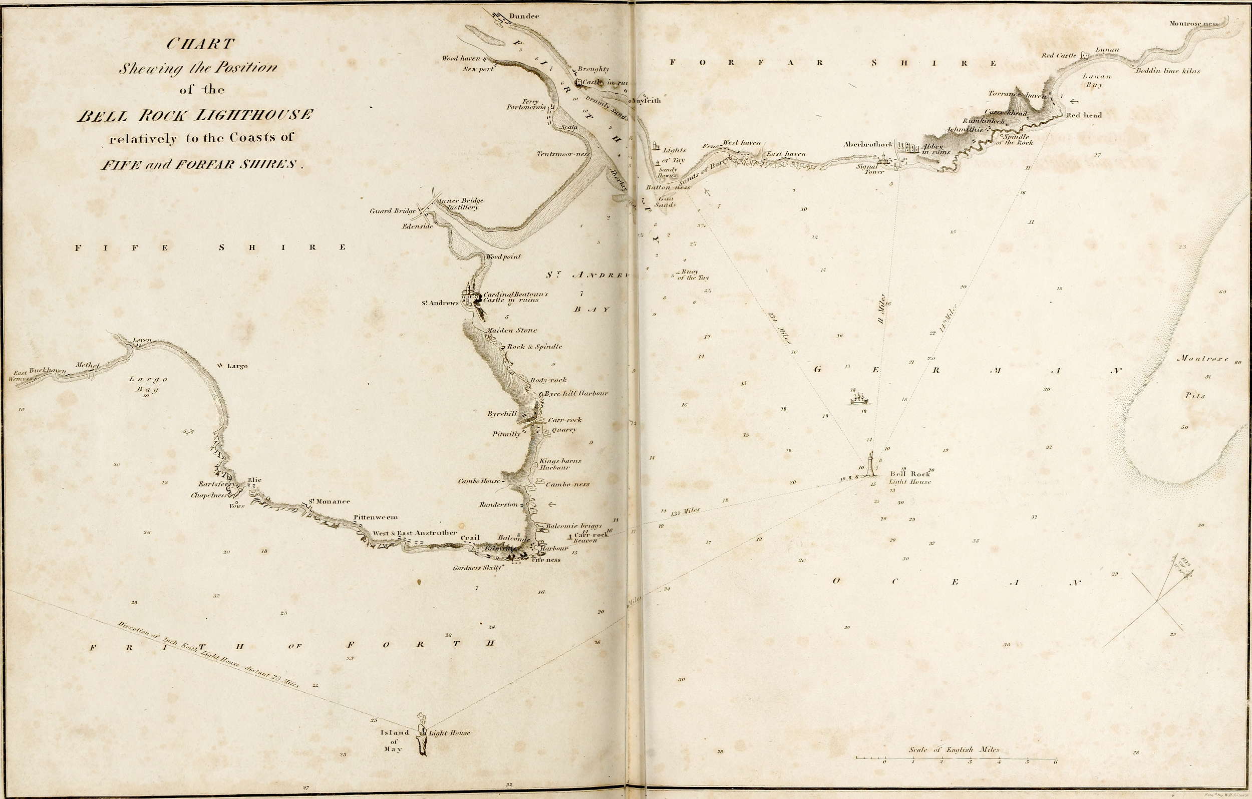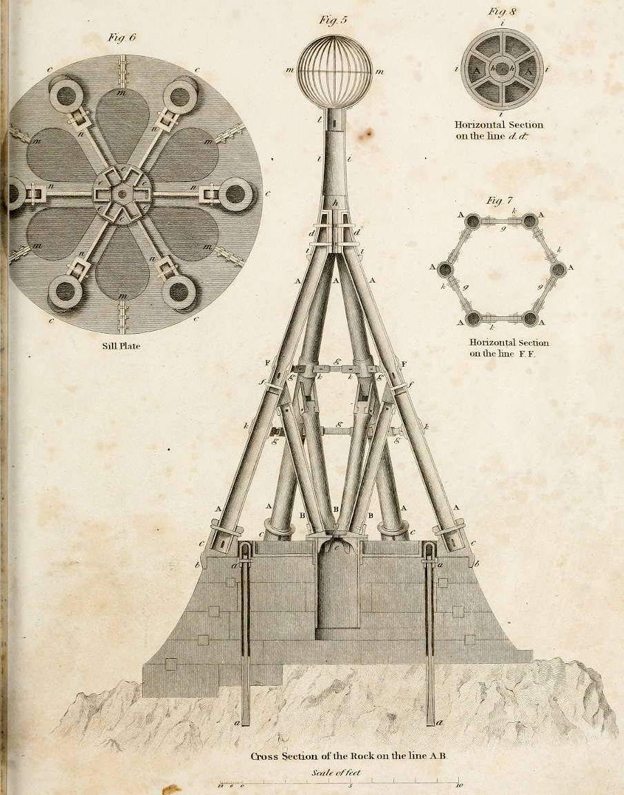 This edifice being of the utmost consequence to the safety of Your Majesty’s Ships of War upon the North Sea station, and of the commercial shipping of this part of the empire, he presumes to hope for Your Majesty’s favourable acceptance of his work. From the known partiality, also, of Your Majesty for naval excursions, which so recently led the Royal Squadron within a comparatively short distance of the Bell Rock Light-house, in the course of Your Majesty’s most gracious Visit to your ancient Kingdom of Scotland, he flatters himself that Your Majesty may feel an additional interest in the subject of this volume.